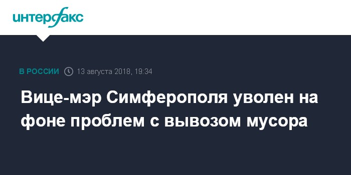 Москва. 13 августа. INTERFAX.RU - Заместитель главы администрации Симферополя Валерий Гуменюк, который курировал сферу ЖКХ в крымской столице, уволен по поручению главы Крыма Сергея Аксенова. Отставка произошла на фоне проблем с вывозом мусора в городе.