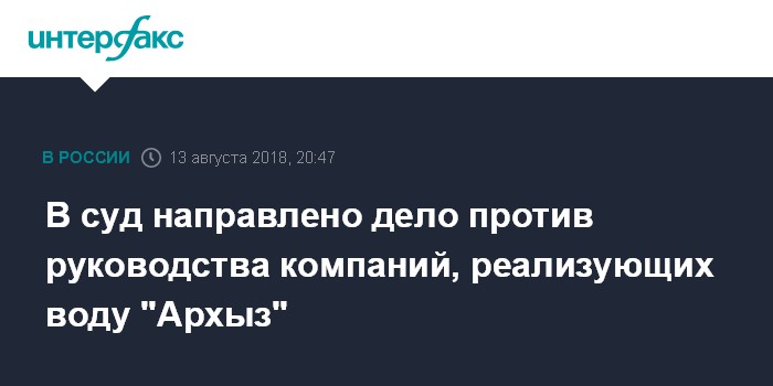 В суд направлено дело против руководства компаний, реализующих воду "Архыз"