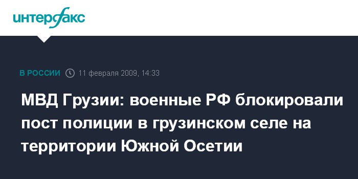 Москва. 11 февраля. INTERFAX.RU - МВД Грузии обвинило российских военных в блокировании поста полиции в одном из грузинских сел на территории Южной Осетии.