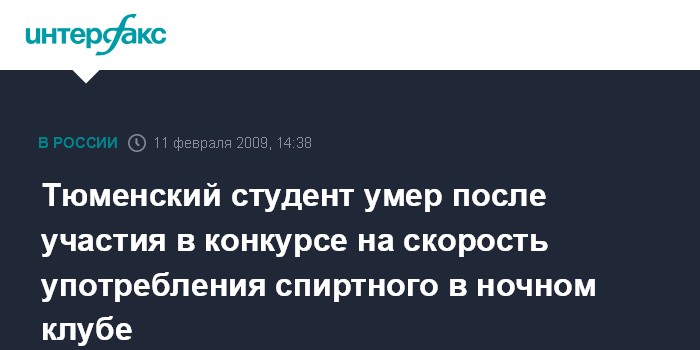 Тюменский студент умер после участия в конкурсе на скорость употребления спиртного в ночном клубе