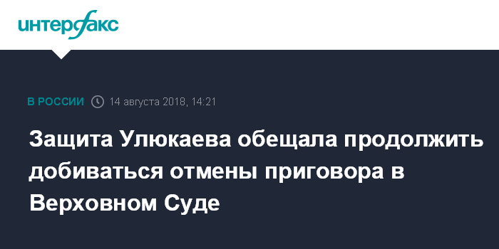 Москва. 14 августа. INTERFAX.RU - Адвокаты бывшего министра экономического развития Алексея Улюкаева намерены обратиться в Верховный суд РФ после отказа Мосгорсуда передать кассационную жалобу на приговор на рассмотрение президиума суда.