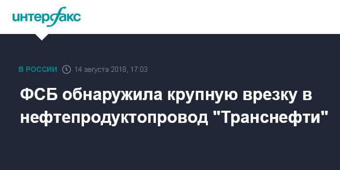 ФСБ обнаружила крупную врезку в нефтепродуктопровод "Транснефти"