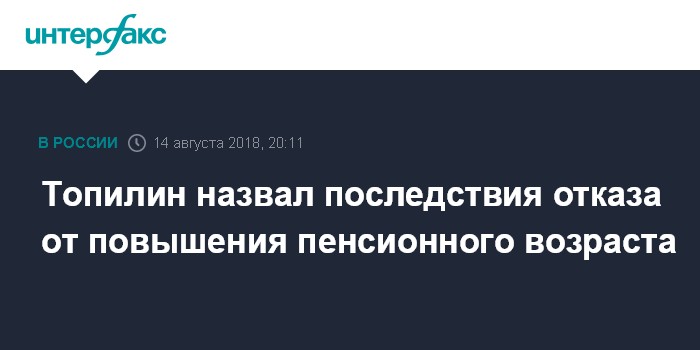 Москва. 14 августа. INTERFAX.RU - Повышение пенсионного возраста в России - необходимое условие для балансировки бюджета Пенсионного фонда (ПФР), заявил глава Минтруда Максим Топилин.