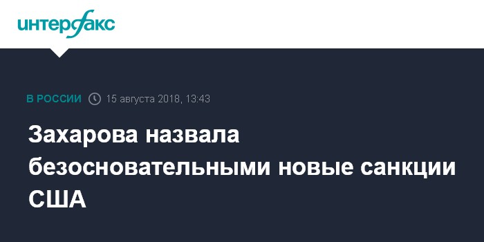 Москва. 15 августа. INTERFAX.RU - Объявленные США санкции против России в связи с ситуацией с отравлением Скрипалей в британском Солсбери безосновательны, заявила официальный представитель МИД РФ Мария Захарова.