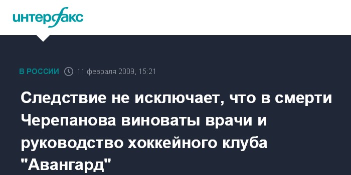 "У следствия есть много вопросов к врачам и руководству хоккейного клуба "Авангард". Непонятно, почему они не смогли установить наличие у А.Черепанова этой болезни, или почему врачи и руководство клуба, зная, что он болен, разрешили ему играть на матче", - сказал Марков.