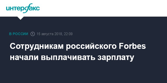 Москва. 15 августа. INTERFAX.RU - Шеф-редактор российского Forbes Николай Мазурин сообщил, что сотрудникам издания начали переводить зарплату за прошлый месяц.