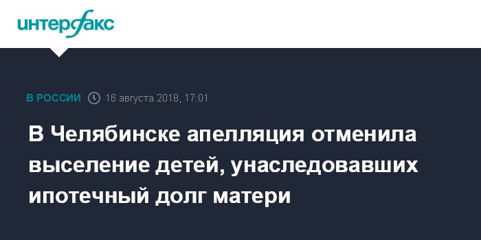 В Челябинске апелляция отменила выселение детей, унаследовавших ипотечный долг матери