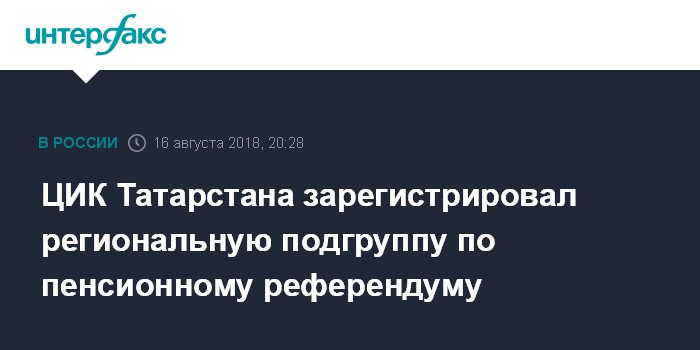 Москва. 16 августа. INTERFAX.RU - Центральная избирательная комиссия республики Татарстан в четверг приняла решение о регистрации региональной подгруппы инициативной группы по проведению пенсионного референдума.