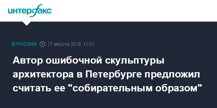 Автор ошибочной скульптуры архитектора в Петербурге предложил считать ее "собирательным образом"