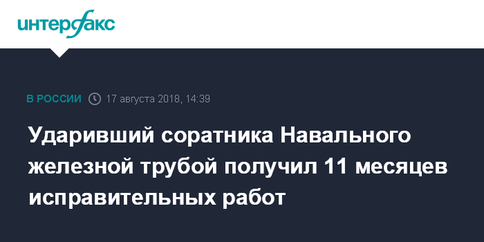 Ударивший соратника Навального железной трубой получил 11 месяцев исправительных работ