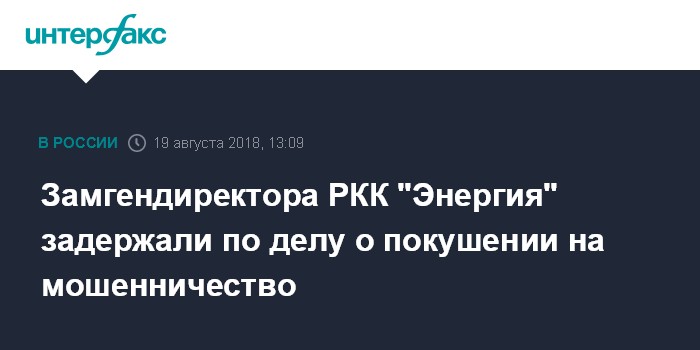 Москва. 19 августа. INTERFAX.RU - Замгендиректора РКК "Энергия" и двое его подчиненных задержаны по подозрению в покушении на мошенничество, сообщили "Интерфаксу" в воскресенье в пресс-службе Следственного комитета (СК).
