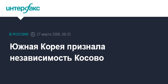 Париж/Сеул. 27 марта. INTERFAX.RU - Представители правительства Южной Кореи заявили в четверг, что Сеул принял решение признать Косово как независимое государство, передает из корейской столицы информационная служба "Интернэшнл геральд трибюн".
