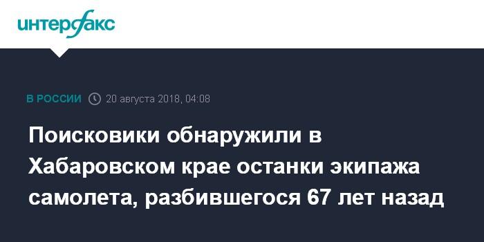Поисковики обнаружили в Хабаровском крае останки экипажа самолета, разбившегося 67 лет назад