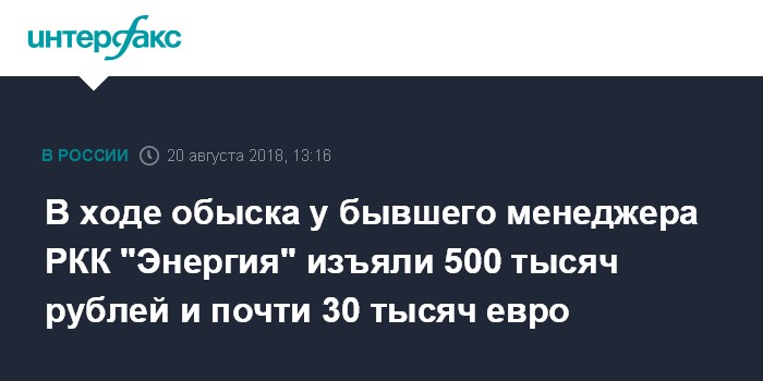 В ходе обыска у бывшего менеджера РКК "Энергия" изъяли 500 тысяч рублей и почти 30 тысяч евро