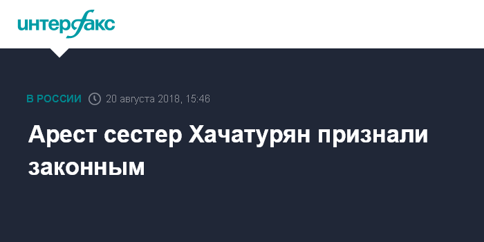 Москва. 20 августа. INTERFAX.RU - Мосгорсуд признал законным арест сестер Хачатурян, обвиняемых в убийстве отца, передаёт корреспондент "Интерфакса" из зала суда.
