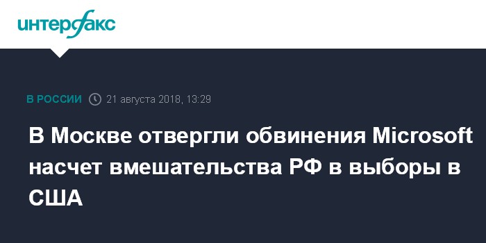 Москва. 21 августа. INTERFAX.RU - В Москве отвергают заявления компании Microsoft о попытках России повлиять на предстоящие в ноябре выборы в американский Конгресс и считают эти утверждения "политической игрой", заявил "Интерфаксу" российский дипломатический источник.