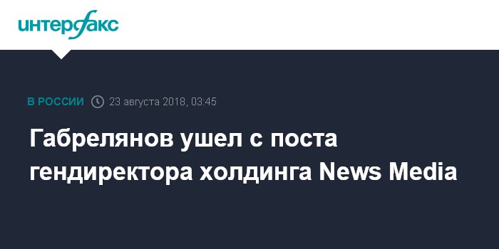 Габрелянов руководил News Media с момента его создания в 2001 году. В разное время в холдинг входили издания "Жизнь", "Твой день", Bubble, газета "Известия", портал и телеканал LifeNews, радиостанция "Русская служба новостей" (Life Звук).