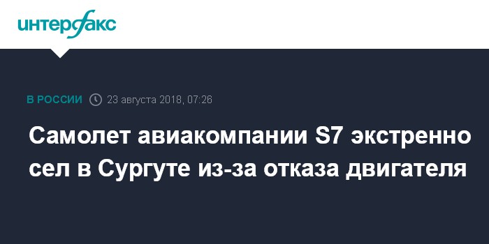 Самолет авиакомпании S7 экстренно сел в Сургуте из-за отказа двигателя