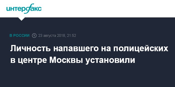 Москва. 23 августа. INTERFAX.RU - По предварительным данным, установлена личность мужчины, напавшего на полицейского с травматическим оружием в центре Москвы, сообщил "Интерфаксу" информированный источник.