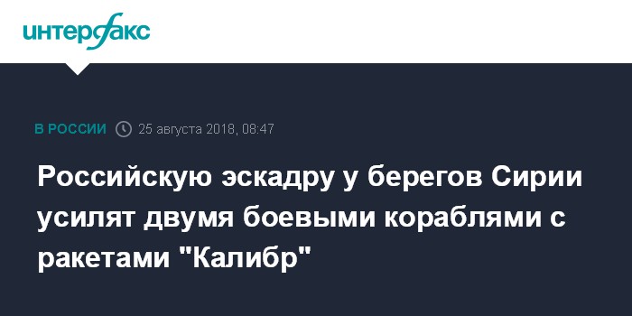 Российскую эскадру у берегов Сирии усилят двумя боевыми кораблями с ракетами "Калибр"