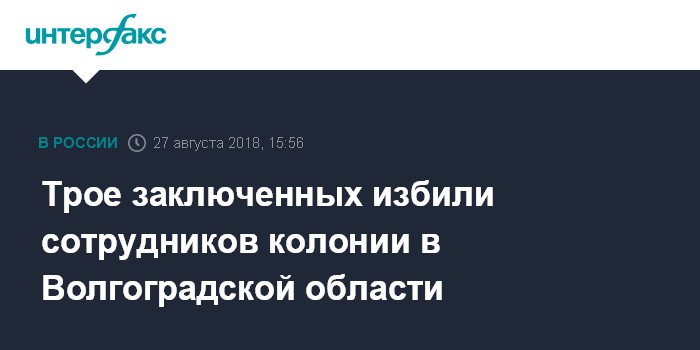 Москва. 27 августа. INTERFAX.RU - Уголовное дело об избиении сотрудников колонии общего режима в городе Волжском возбуждено в отношении троих заключенных этого исправительного учреждения, сообщила агентству "Интерфакс" в понедельник представитель регионального СУ СКР Юлия Лисеева.