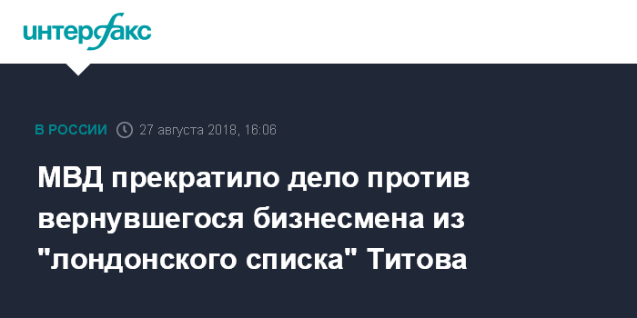 МВД прекратило дело против вернувшегося бизнесмена из "лондонского списка" Титова