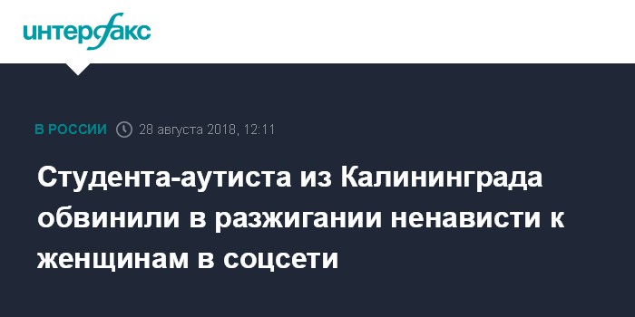 Студента-аутиста из Калининграда обвинили в разжигании ненависти к женщинам в соцсети