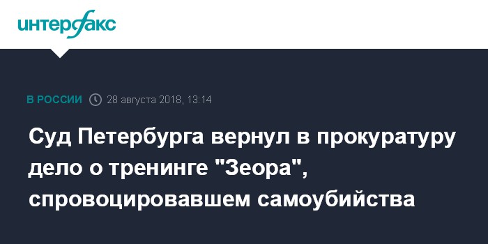 Суд Петербурга вернул в прокуратуру дело о тренинге "Зеора", спровоцировавшем самоубийства