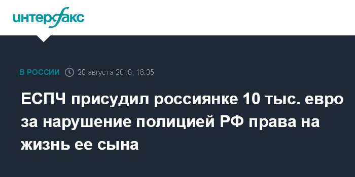 ЕСПЧ присудил россиянке 10 тыс. евро за нарушение полицией РФ права на жизнь ее сына