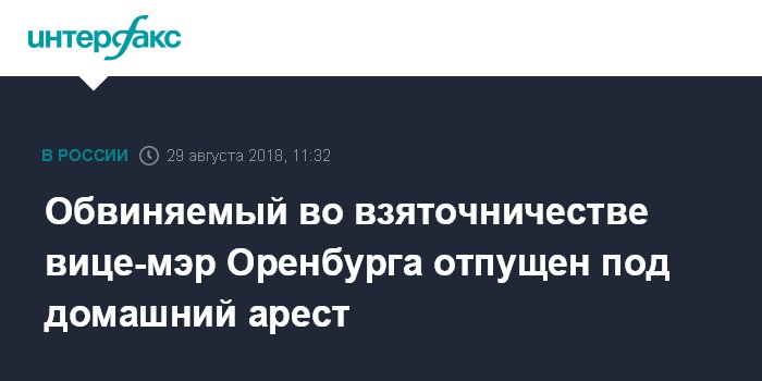 Как сообщалось со ссылкой на СКР, 9 августа замглавы Оренбурга Геннадий Борисов был задержан с поличным при получении взятки в 2 млн рублей от гендиректора компании за покровительство в сфере строительства и реализации объектов недвижимости.