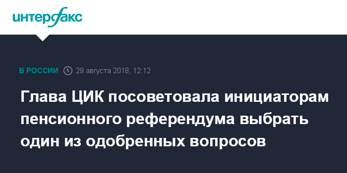 Ранее ЦИК России одобрил формулировки вопросов для пенсионного референдума пяти различных инициативных групп.