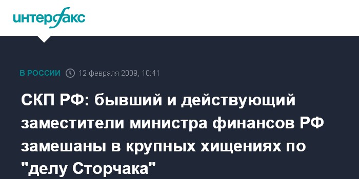 СКП РФ: бывший и действующий заместители министра финансов РФ замешаны в крупных хищениях по "делу Сторчака"