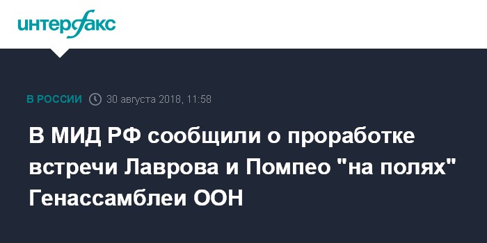 Москва. 30 августа. INTERFAX.RU - Встреча главы МИД РФ Сергея Лаврова и госсекретаря США Майка Помпео "на полях" Генассамблеи ООН в Нью-Йорке прорабатывается, заявила официальный представитель МИД РФ Мария Захарова.