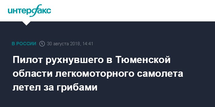 Пилот рухнувшего в Тюменской области легкомоторного самолета летел за грибами