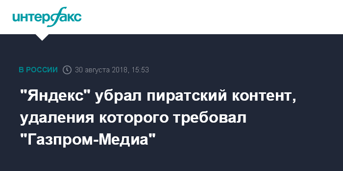 24 августа Мосгорсуд принял решение, что "Яндекс" должен удалить из списка выдачи в поисковике ссылки на пиратские копии шоу и сериалов, принадлежащих "Газпром-медиа".