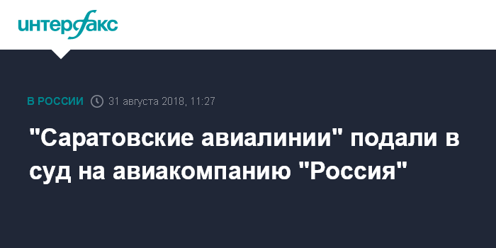 Москва. 31 августа. INTERFAX.RU - АО "Саратовские авиалинии" подало иск к авиакомпании "Россия" (входит в группу "Аэрофлот"), у которой ранее арендовало самолеты Ан-148.