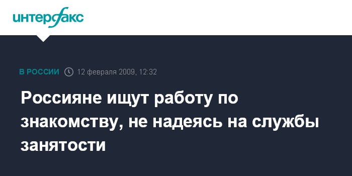 Москва. 12 февраля. INTERFAX.RU - Большинство россиян, обратившись в службы занятости, не смогли получить помощь в трудоустройстве - в поисках работы они чаще идут к знакомым или родственникам, выяснили социологи.