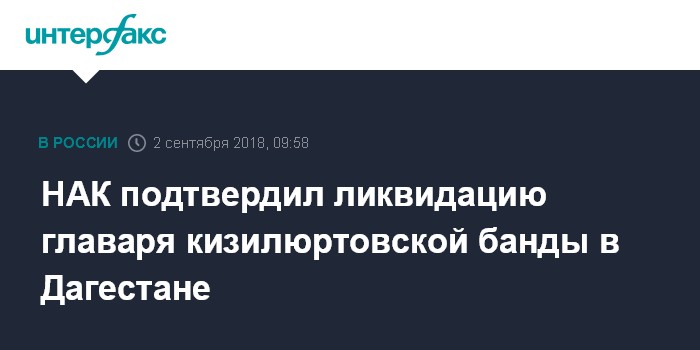 Москва. 2 сентября. INTERFAX.RU - Национальный антитеррористический комитет РФ в воскресенье сообщил о ликвидации в ходе контртеррористической операции (КТО) в Дагестане главаря кизилюртовской банды Абаса Хубаева, причастного к нападению на сотрудников правоохранительных органов.