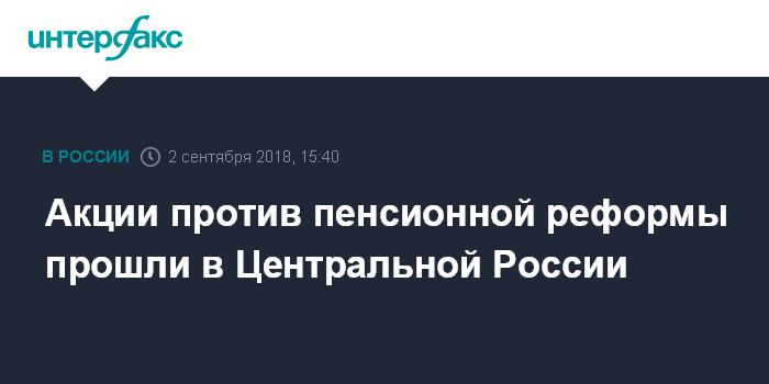 Москва. 2 сентября. INTERFAX.RU - Акции против повышения пенсионного возраста прошли в областных центрах и муниципальных образованиях в ряде регионов Центрального федерального округа в воскресенье.