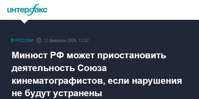 Минюст РФ может приостановить деятельность Союза кинематографистов, если нарушения не будут устранены