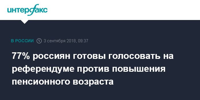77% россиян готовы голосовать на референдуме против повышения пенсионного возраста