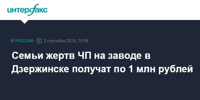 Семьи жертв ЧП на заводе в Дзержинске получат по 1 млн рублей
