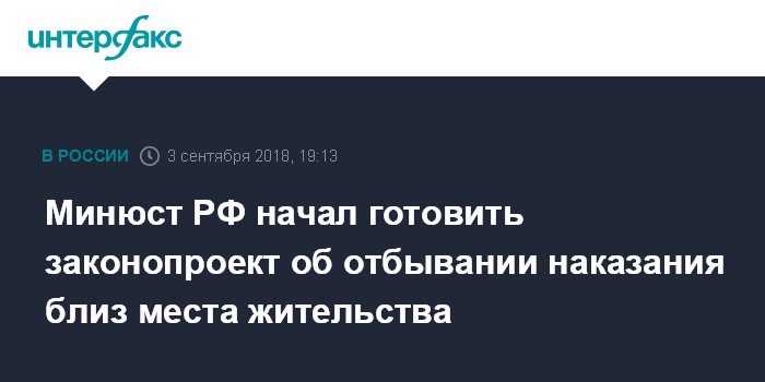 Москва. 3 сентября. INTERFAX.RU - Минюст РФ разрабатывает законопроект, согласно которому осужденные смогут отбывать наказание в исправительных учреждениях, расположенных вблизи их места жительства или места жительства их близких родственников, сообщается на официальном сайте ведомства в понедельник.
