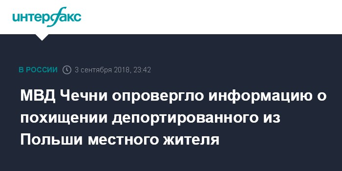 МВД Чечни опровергло информацию о похищении депортированного из Польши местного жителя