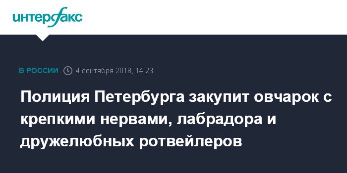 Полиция Петербурга закупит овчарок с крепкими нервами, лабрадора и дружелюбных ротвейлеров