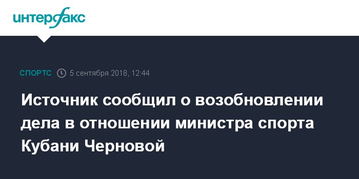 Источник сообщил о возобновлении дела в отношении министра спорта Кубани Черновой