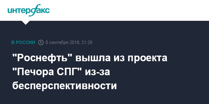 В прошлом году "Роснефть" сообщала, что проект "Печора СПГ" интересен ряду опытных игроков рынка сжиженного природного газа, и НК работает над привлечением стратегических партнеров.