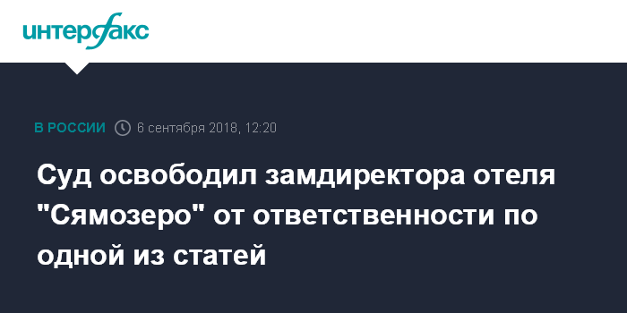 Суд освободил замдиректора отеля "Сямозеро" от ответственности по одной из статей