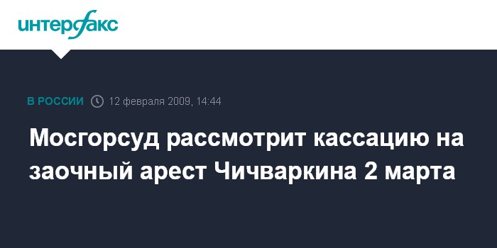 Москва. 12 февраля. INTERFAX.RU - Мосгорсуд 2 марта рассмотрит жалобу защиты бывшего главы "Евросети" Евгения Чичваркина на его заочный арест. "Рассмотрение нашей кассационной жалобы в Мосгорсуде назначено на 2 марта", - сообщил в четверг "Интерфаксу" адвокат Чичваркина Владимир Жеребенков.
