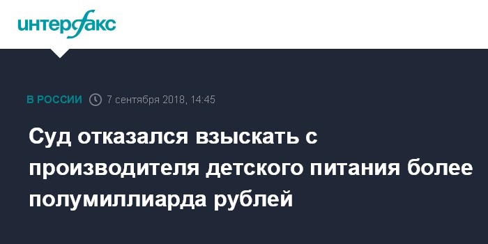 Суд отказался взыскать с производителя детского питания более полумиллиарда рублей